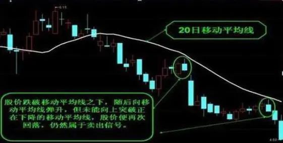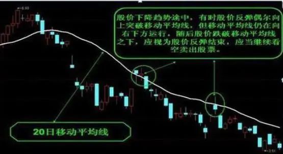 1、股价下降趋势途中,有时股价反弹偶尔向上突破移动平均线,但移动平均线仍在向右下方运行,随后股价再次跌破移动平均线之下,应视为股价反弹结束,应当继续看空卖出股票。